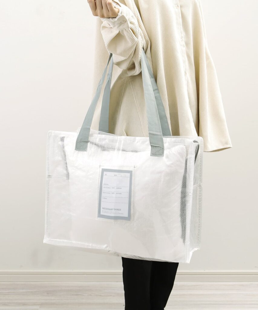 チャック付きで雨が入りにくく、縦にすると自転車の前カゴに収まります。