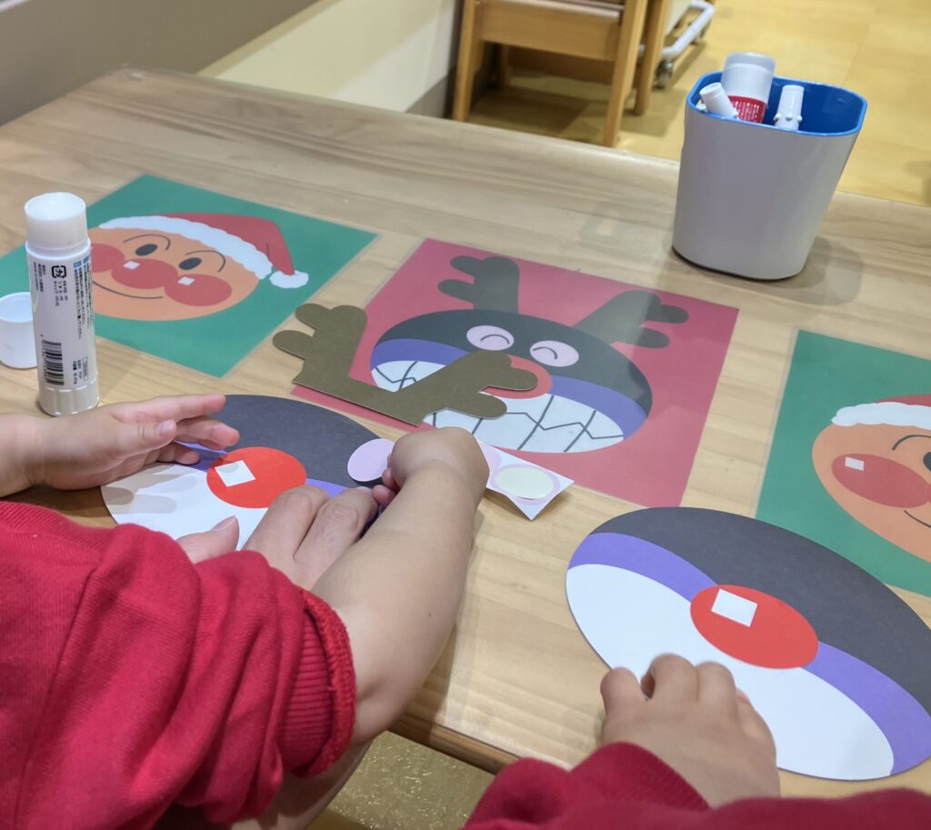 「お姉さんがいるよ!声かけてくる?」と聞くと、こどもたちは「行くー!次は何のシールかな?」「アンパンマンだー!」と楽しんでいました。