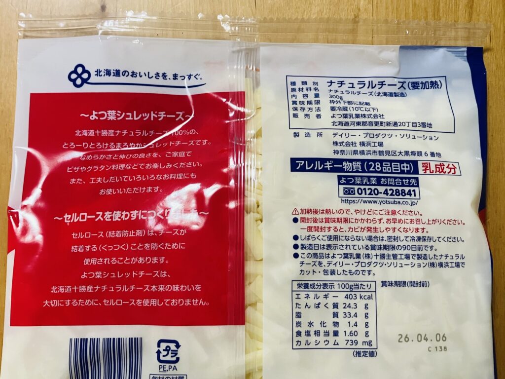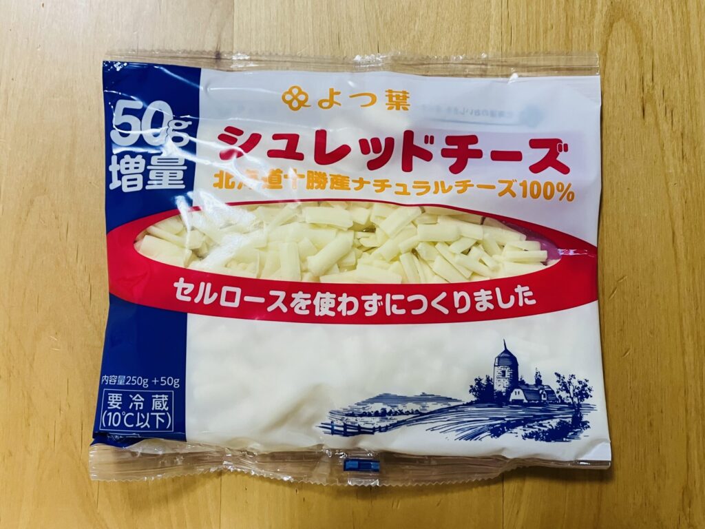よつ葉のシュレッドチーズを先ほど紹介した食パンにのせてトーストすると、いつも感動します。毎朝感動してます(笑)(ほかに戻れなくなるのでご注意ください。)