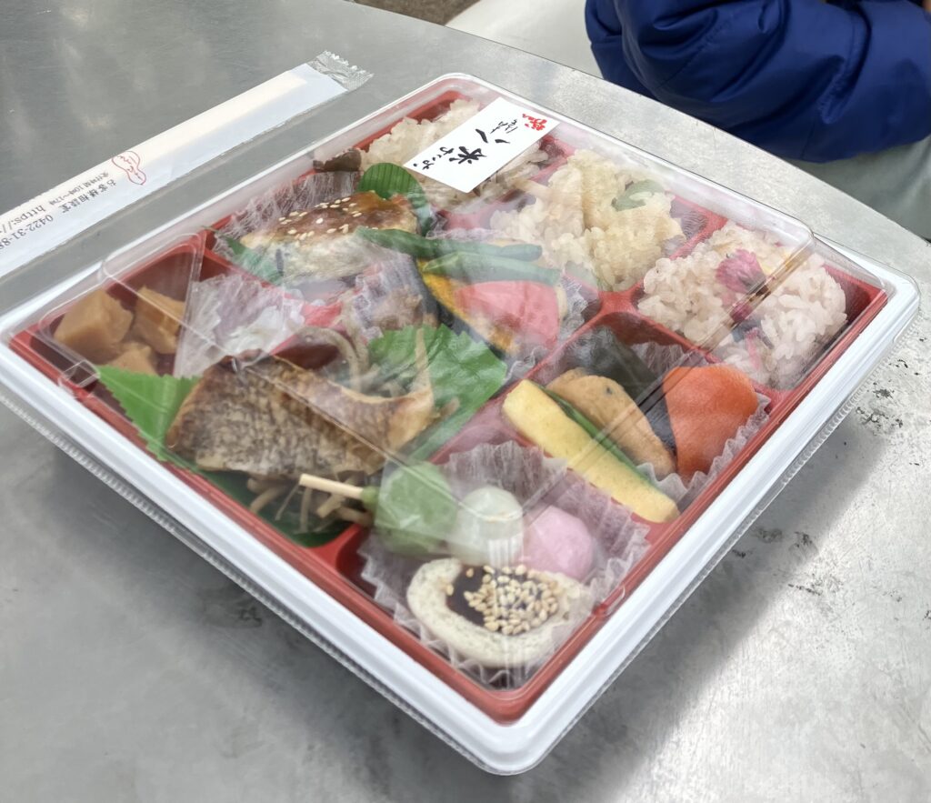 手づくりはもちろん、米八テイクアウトもお花見らしくて好き。子どもも食べやすい内容です。